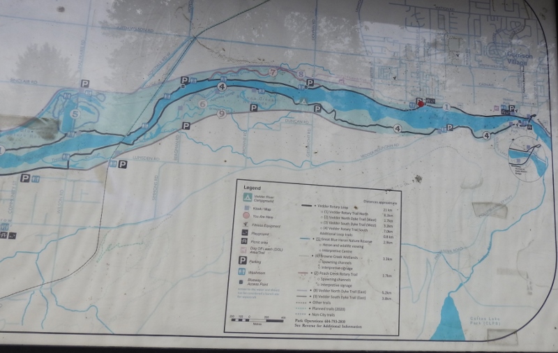 I wouldn’t mind walking all the way to the Great Blue Heron Reserve, but would probably have a problem walking all the way back to the parking lot. I think (but haven’t looked it up) that the Keith Wilson Bridge is where you can walk over it to the other side of the river and there is another trail on that side. It doesn’t give all the distances on the trails,