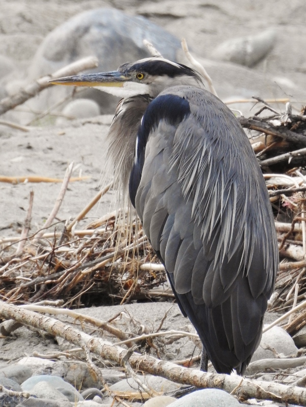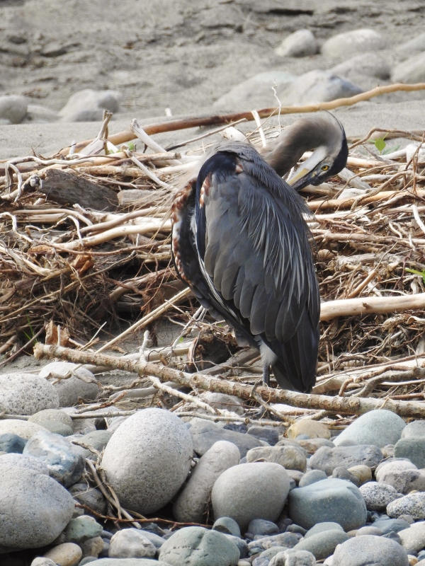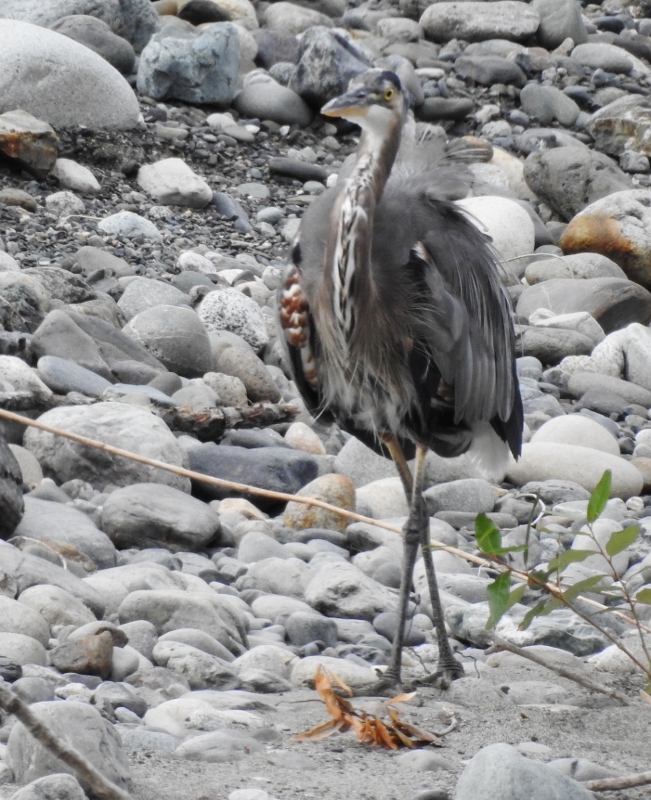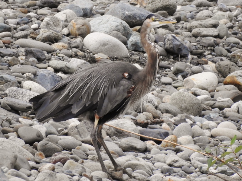As I was looking that the map, a man & woman came up to where I was and were talking about a Great Blue Heron. My ears perked up and I asked where they had seen it. She pointed to some rocks across the water and there it was!
