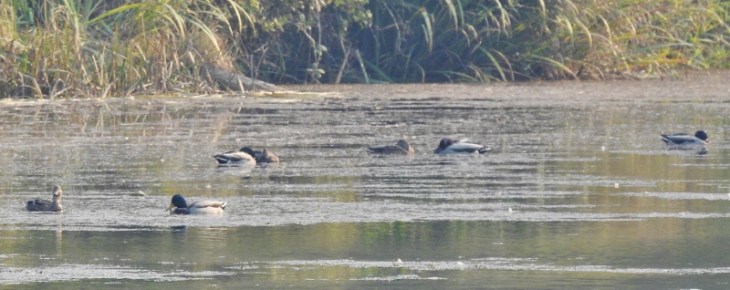 3 & 1/2 pairs of Mallard Ducks on the water