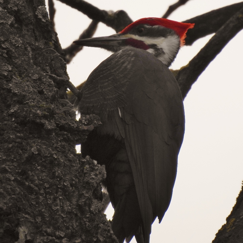A beautiful Pileated Woodpecker was busy looking for some food under the bark of the tree. I heard him before I saw him!