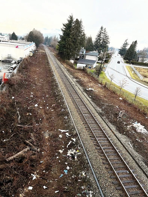There was actually a train on the tracks when I was at the bottom of the bridge that goes over the tracks, but it was out of sight by the time I reached the middle of the bridge. I wanted to get the train in the photo. There is a lot of garbage along the tracks. 😦