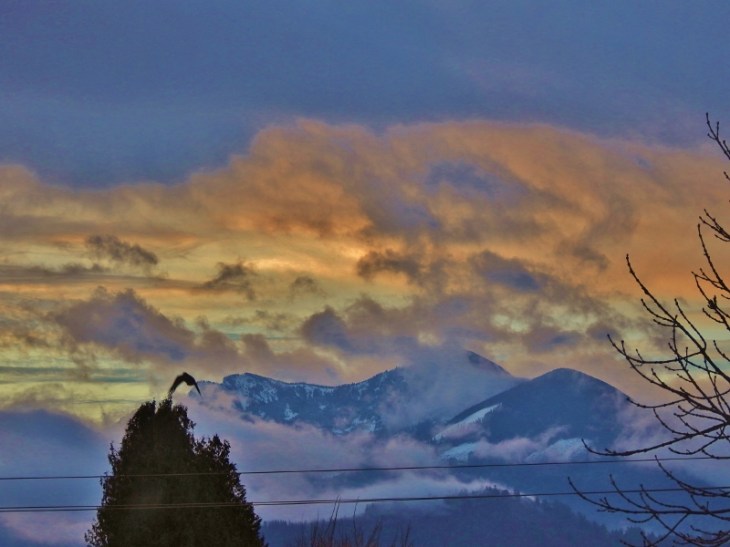 Before heading out, I had to take a photo out my window with the colours of the sunrise around the mountains.