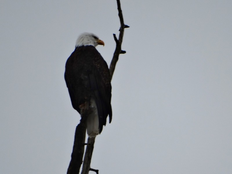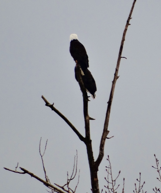 and three gorgeous Bald Eagles! 🙂 They were in two different spots, with the single one being the first I saw. Then I walked over to the other side of the water and saw what I thought was one Eagle. It wasn’t until I got home and uploaded the photos that I saw the 2nd one.