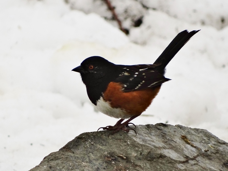 A Spotted Towhee was nice enough to hang out on this rock for long enough to allow a photo.