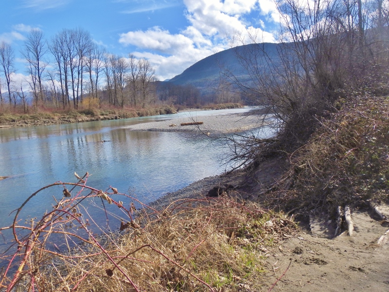 Yesterday I headed back to finally get moving again on the Vedder River Rotary Trail. I don’t know why they used such confusing signs in the bridge location. I had no problem following the trail until I got to the bridge. Well, I did have a little problem when I got to the huge pile of dirt, with nothing to say where to go next. This trail is 20+ km long, but I haven’t seen an exact distance for it – just 20+. I passed the 10, 11 & 13 km signs on this walk and then I passed them again on the way back to my car.