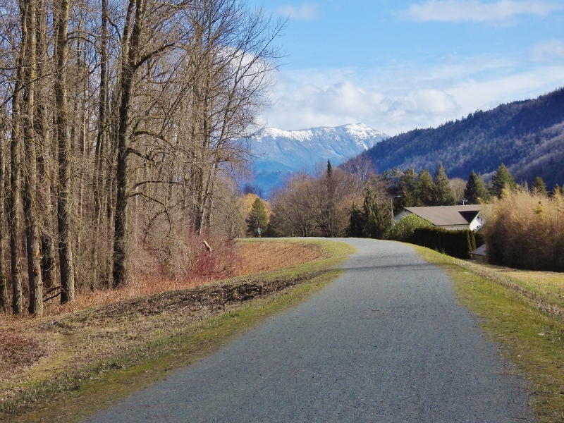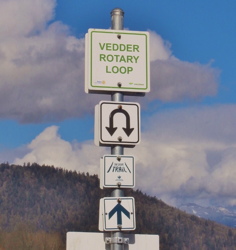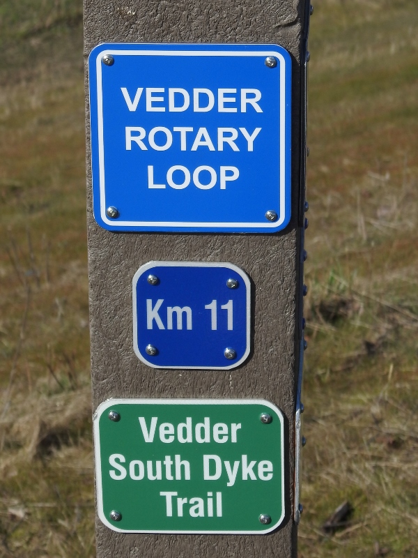 Yesterday I headed back to finally get moving again on the Vedder River Rotary Trail. I don’t know why they used such confusing signs in the bridge location. I had no problem following the trail until I got to the bridge. Well, I did have a little problem when I got to the huge pile of dirt, with nothing to say where to go next. This trail is 20+ km long, but I haven’t seen an exact distance for it – just 20+. I passed the 10, 11 & 13 km signs on this walk and then I passed them again on the way back to my car.