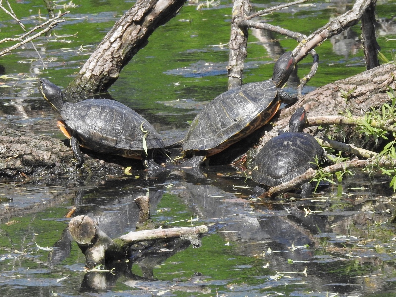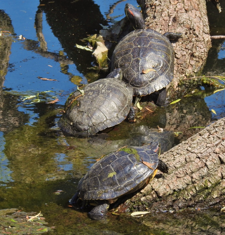 Lots of Turtles in the pond. Western Painted Turtles are natural to this area, but there are also Red Eared Sliders that have been introduced into the area. As often happens, introduced creatures often thrive and take over the area.