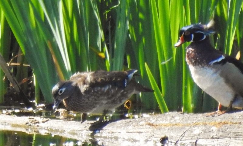 Perched on a log out in the water, were a pair of Wood Ducks and a couple of Turtles.