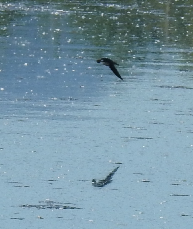 These 2 are very poor photos, but there were dozens of Swallows flying by. I used a lot of zoom to get them at all, but kind of liked these 2 shots that have both the birds and the reflections in the water.