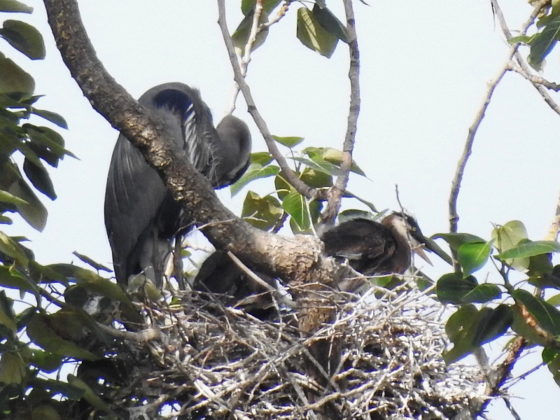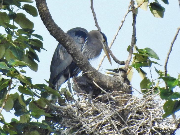 Each time I headed out to the Great Blue Heron Nature Reserve, I was hoping to see a baby – and until today, it was always just wishful thinking. But today -I found one in a nest with a parent standing guard.