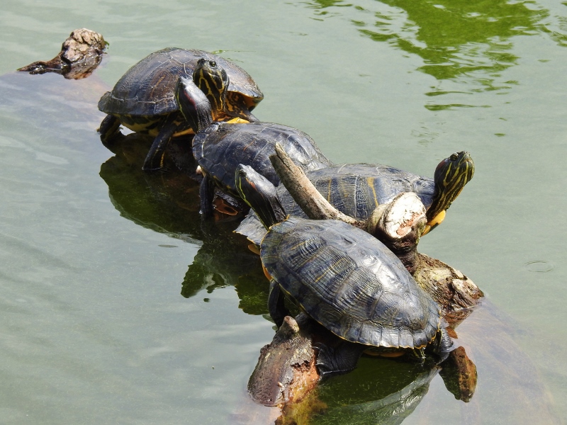 Of course, I still had to take photos of the turtles in the pond. The first photo turned out much better than I thought it would, since the shell was under water and I was zoomed in quite a bit. The rest of the turtles were perched on a log in the water.