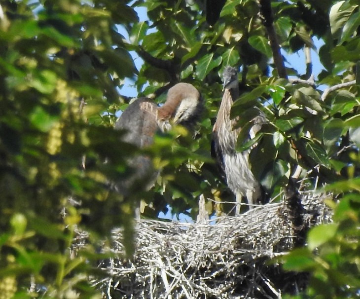 If you are ever lucky enough to find a breeding colony of Great Blue Herons – please keep your distance so they are not disturbed. (my camera has a LOT of zoom – (2,000mm or 83 x zoom). If the nesting birds are disturbed, the parents may fly away and leave their babies unattended which could result in birds of prey descending on the nests and the babies would be killed.