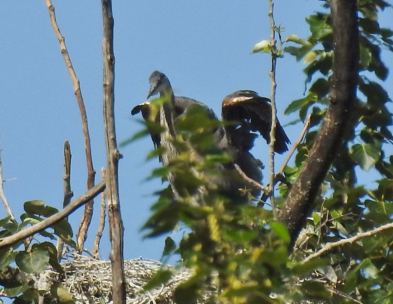 Unfortunately, last fall, the tree where the Bald Eagles nested, fell. The eagles are still in the area, but I have not seen their new nest site and I seldom see them perched near the heron nests. Although I have seen several heron chicks, I have no idea how many have been lost to hawks & eagles.