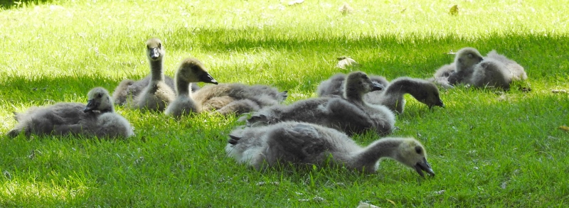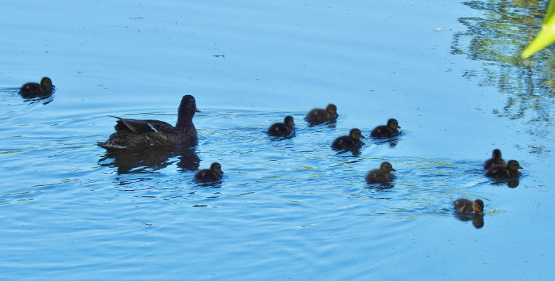 Mom Mallard Duck with plenty of ducklings and a zoomed in photo to get a closer look.