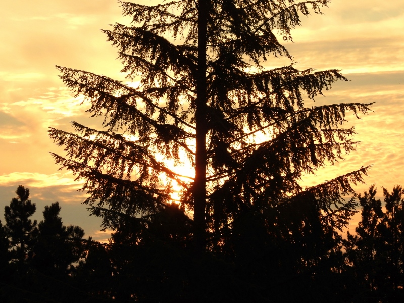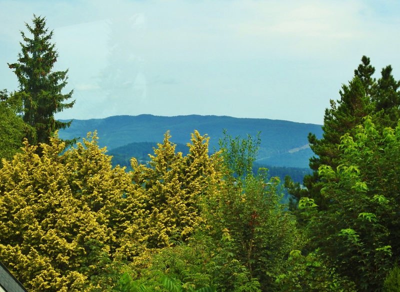 Beautiful view right from the house – with the sun hitting some of the leaves .