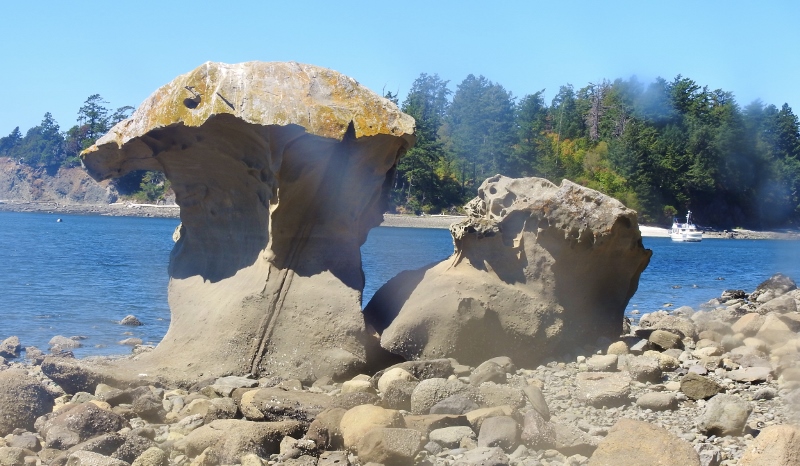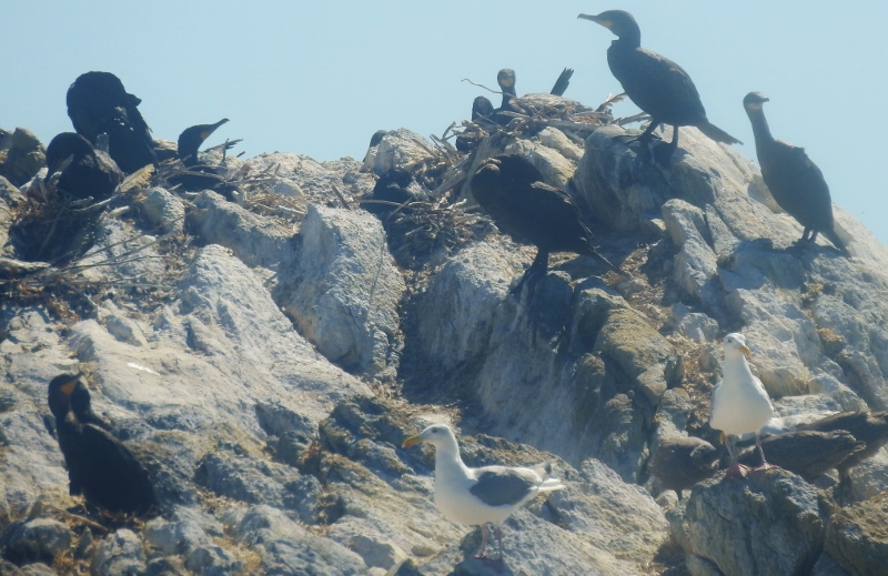 Although I took a fair number of photos, I also managed to get absolutely soaked by the salt water on the ride to the island. There were places to sit or stand on the roof and that is where I went to take photos. About mid way across to our destination, we hit some big waves and most of us up there got absolutely soaked. I could (& did) taste the salt. The water was getting rougher every minute at this point, so I headed down to stay inside & dry. I didn’t actually dry off until we landed at Sucia Island. The salt really didn’t bother me on my body, but my hair felt stiff from the salt soaking. The first thing I did when I got home was to shower!