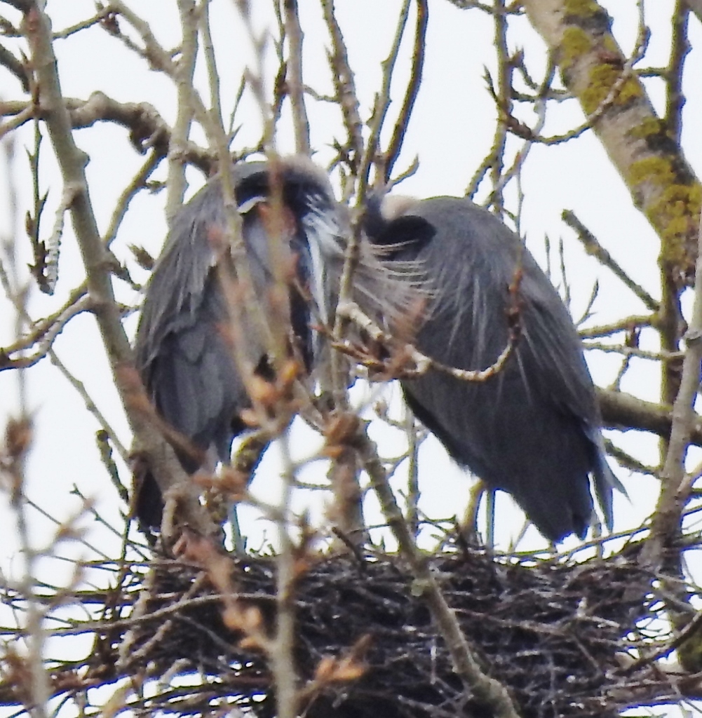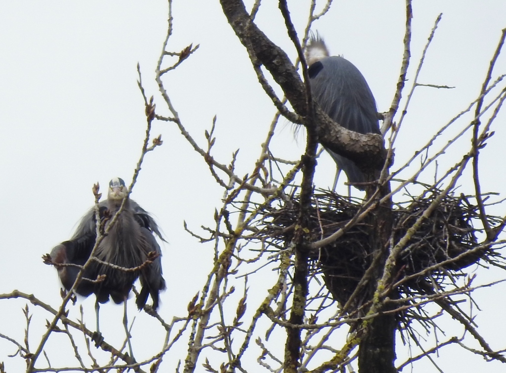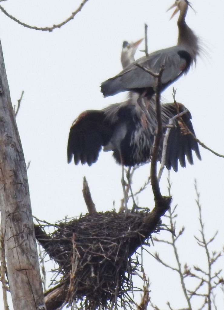 I wandered around at the Great Blue Heron Nature Reserve a couple of days ago and was thrilled to see that the Great Blue Herons have picked their nests and their mates. I don’t believe that eggs have been laid yet – but it is possible. Otherwise, the laying will begin very soon.