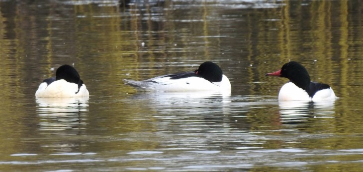 A trio of Common Mergansers in Sardis Pond